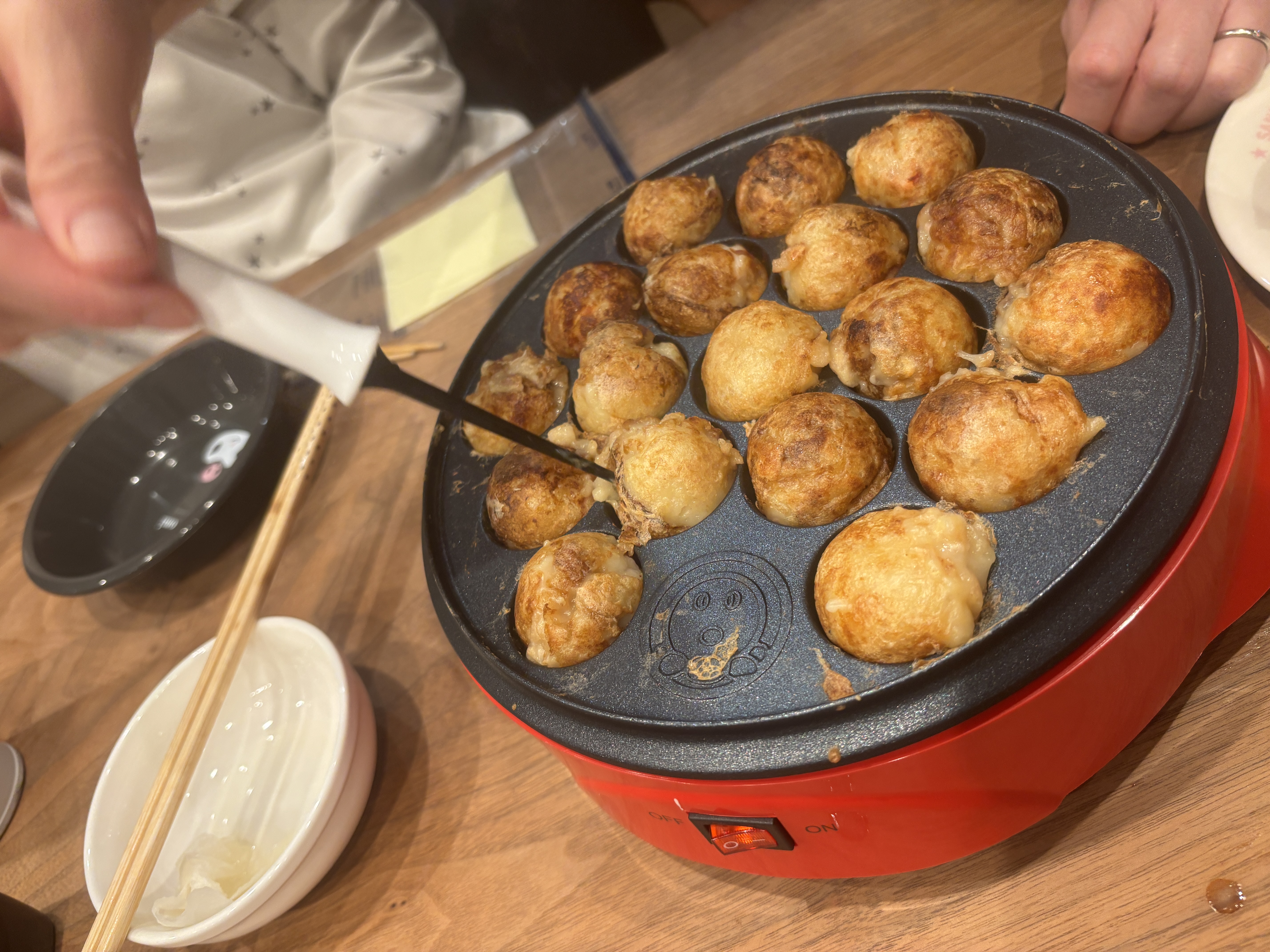 思い立って家でタコパすることに。初心者なので電気のタイプの小さいやつ。味変はマストですな。おすすめの具材あれば教えて下さい❗️最初の5個くらいはとても美味しく感じました笑