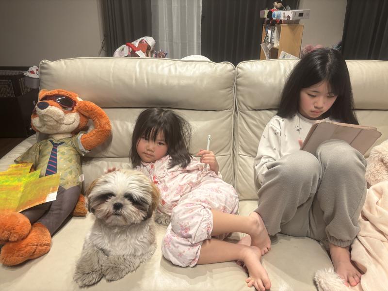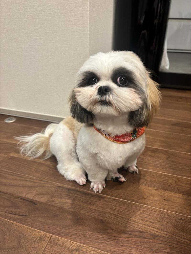 足注目してください。手羽先のようになってます。毛がふさふさしてるほうが私は好きですが、散歩のたびに足が汚れてしまうので、、アフターのほうが楽ちんではあります。寒いかな。