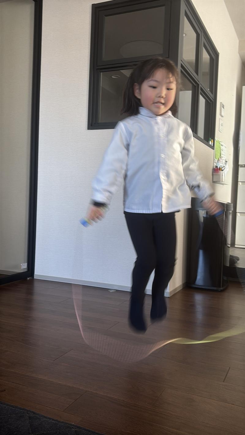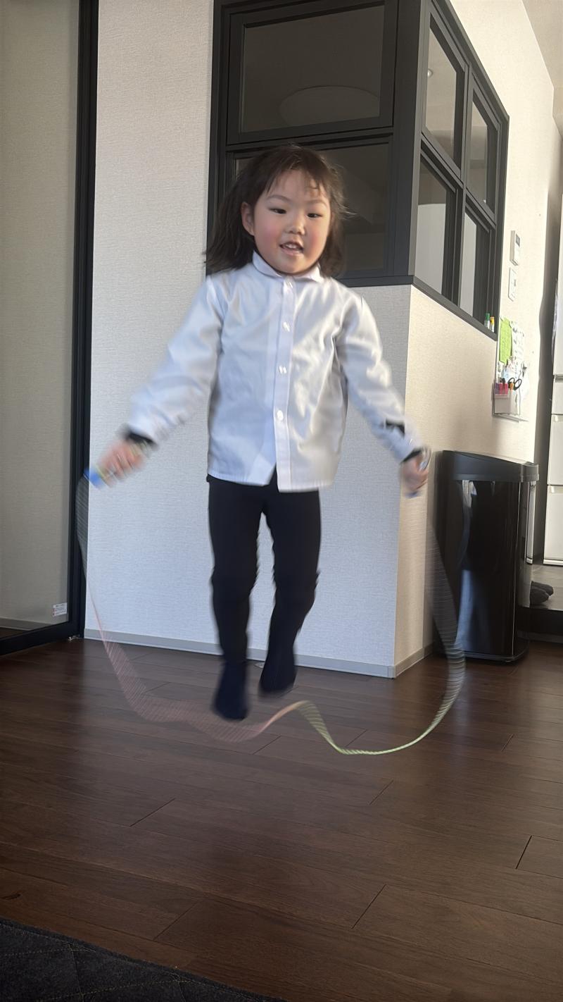 おもむろに縄跳びやるって言って縄跳びを始めました。最初1回もできなかったのがやれると楽しいのでしょうね。30回を超えるまで延々とやってました。それは凄い。ただし、、今日一日でブームは終わることでしょう。。そんなものですかね、、