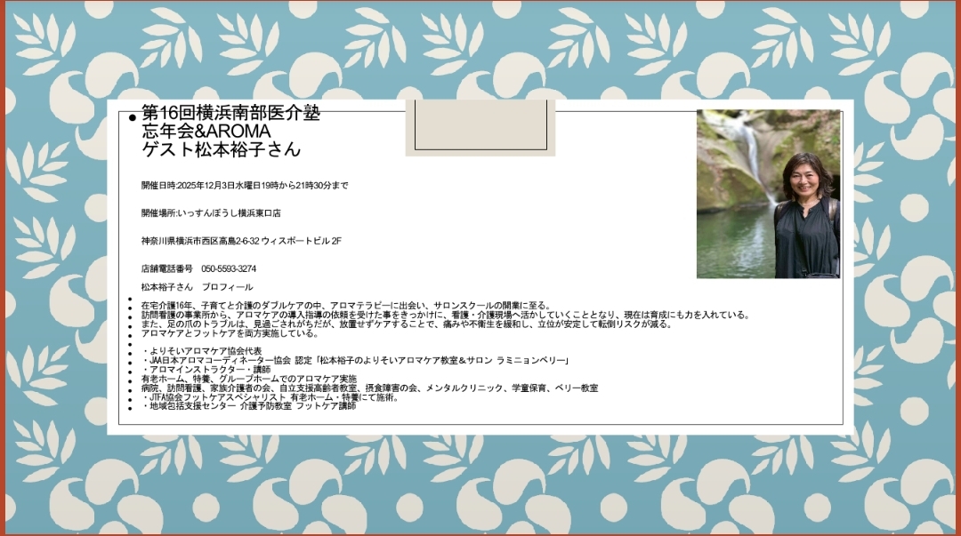 気付き・学び・交流をはかることができましたこと、参加者の皆様に感謝しております。次回の開催については、オミクロン感染拡大の様子をみながら、3回目ワクチン接種状況により、検討させていただきたいと思います。